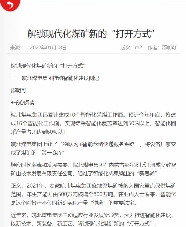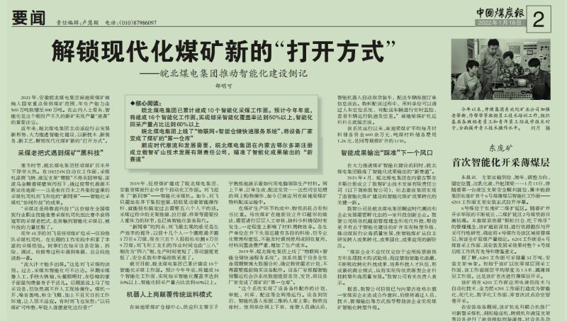 1月18日中國(guó)煤炭報(bào)2版頭條:解鎖現(xiàn)代化煤礦新的“打開方式”