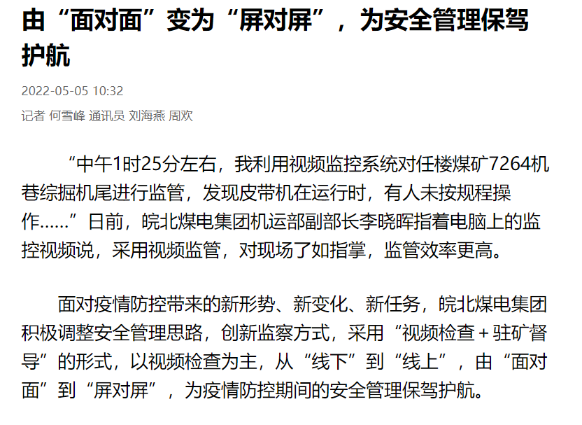 5月5日安徽日?qǐng)?bào)客戶端:由“面對(duì)面”變?yōu)椤捌翆?duì)屏” 為安全管理保駕護(hù)航