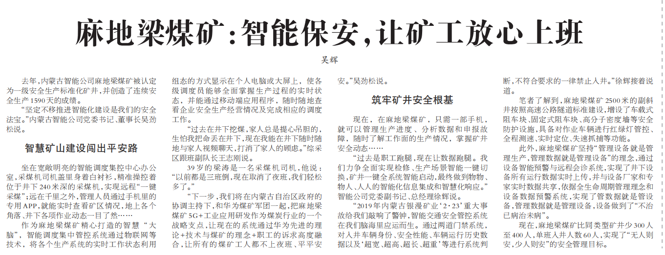 1月18日中國(guó)煤炭報(bào)2版頭條:解鎖現(xiàn)代化煤礦新的“打開(kāi)方式”