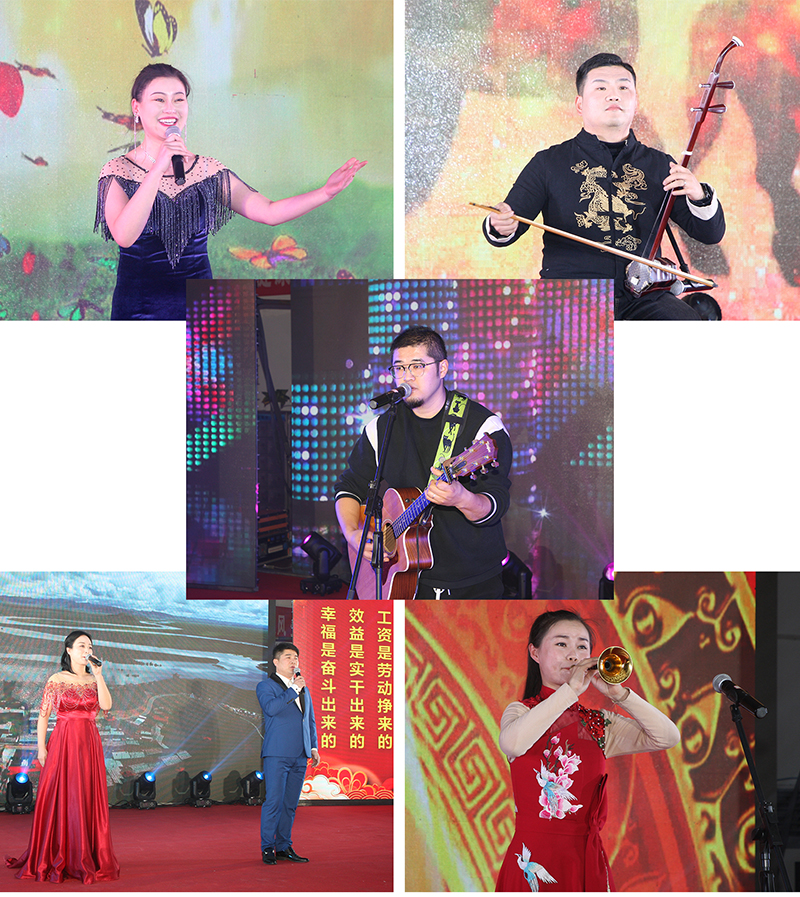 晚上18時(shí)30分,歡樂鑼鼓響起。《節(jié)日歡歌》率先亮相,宿州市文聯(lián)的文藝骨干將精心排練的二胡獨(dú)奏《賽馬》、男女聲二重唱《春風(fēng)十萬里》、嗩吶獨(dú)奏《百鳥朝鳳》、吉他彈唱《你的答案》等精彩節(jié)目獻(xiàn)給任樓職工。演出現(xiàn)場,熱鬧中洋溢著歡樂祥和的喜慶氣氛,臺上演員們?nèi)橥度氡硌?,臺下職工看得聚精會神,共同感受傳統(tǒng)文化的獨(dú)特魅力。不時(shí)有職工們掏出手機(jī)、相機(jī)拍攝歡樂場景,定格精彩瞬間。