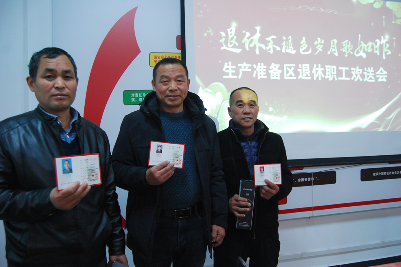 12月13日上午,恒源礦生產(chǎn)準(zhǔn)備區(qū)在會議室專門為李祥坤、劉紹春、韓金光等8位退休職工舉辦了簡潔而溫馨的歡送儀式,并為他們送上了精心準(zhǔn)備的紀(jì)念品,將對退休職工的關(guān)心關(guān)懷落到實處。