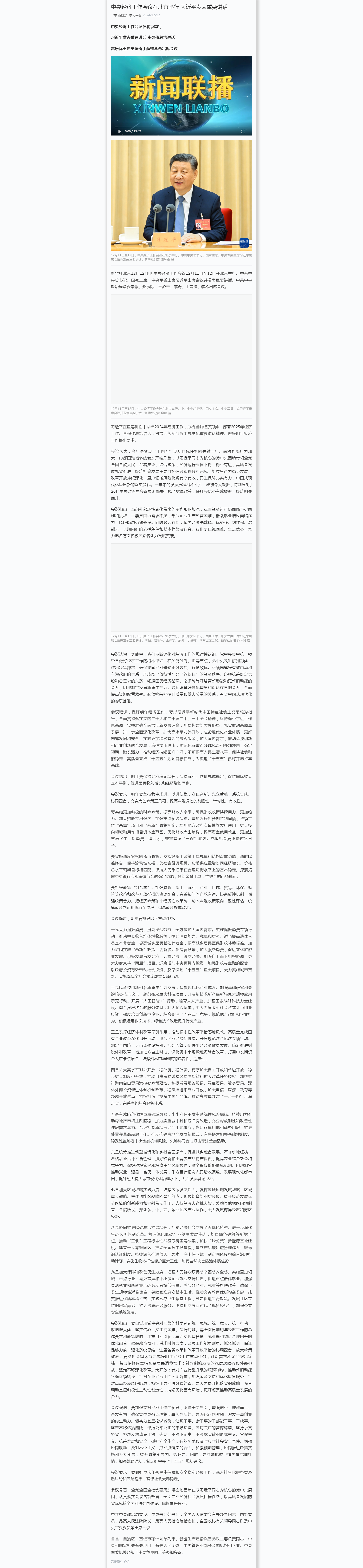 中央經(jīng)濟(jì)工作會(huì)議在北京舉行 習(xí)近平發(fā)表重要講話