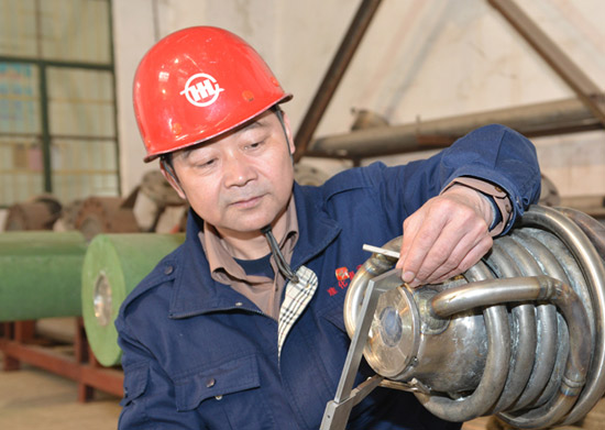 2010年,陸勝祥班組接受了一項(xiàng)氣化爐燒嘴技術(shù)改進(jìn)的任務(wù),當(dāng)時(shí)淮化既沒有專業(yè)的機(jī)械設(shè)計(jì)人員,也沒有工藝設(shè)計(jì)圖紙,只有一份根據(jù)廠家描述畫出來的多元料漿燒嘴總裝示意圖。關(guān)鍵時(shí)刻,淮化集團(tuán)又一次將技改的重任交給了陸勝祥。經(jīng)過七天七夜的努力,他不負(fù)眾望圓滿完成了繪圖、工器具制作、內(nèi)噴頭光刀改造任務(wù)。最終,第一臺(tái)氣化爐多元料漿燒嘴技改成功,不僅實(shí)現(xiàn)了裝置的穩(wěn)定運(yùn)行,也實(shí)現(xiàn)了合成氨廠燒嘴連續(xù)運(yùn)行119天的新歷史。